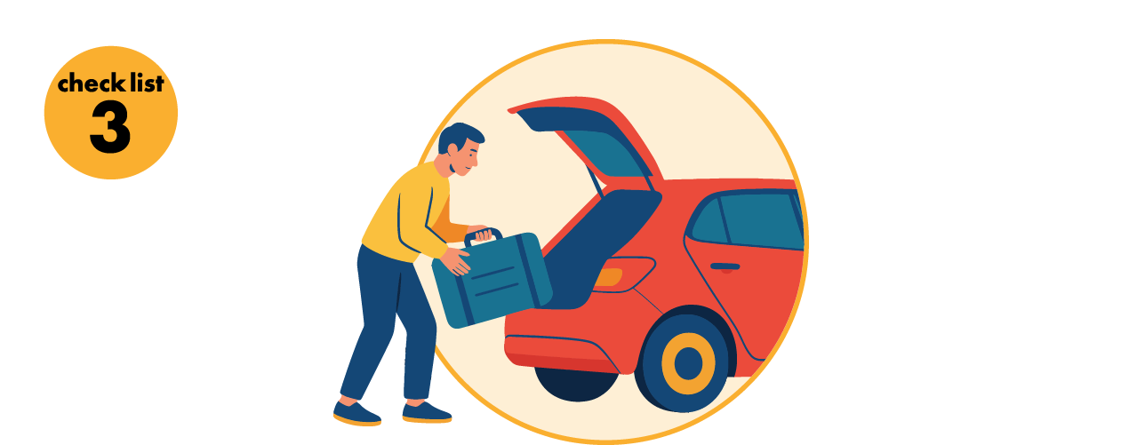 バッグをお客様のお車に積載します。バッグは60センチほどで、1名様分スペースに収まります。